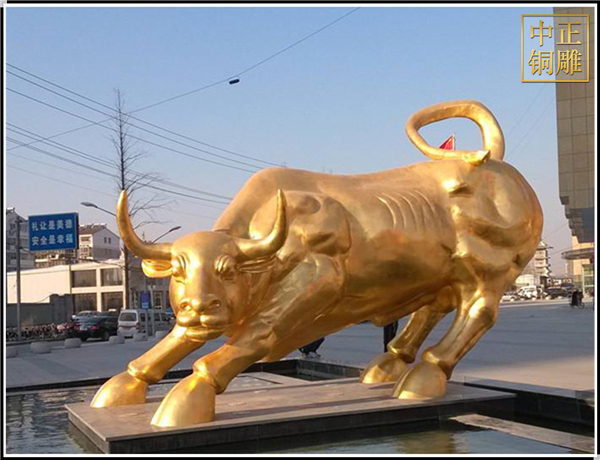 美國華爾街紐約證券交易所門前便有一只“旺市銅牛”,是重金邀請著名塑大師及鑄造大家以5噸青銅精心澆鑄而成。此牛形體健壯,磅礴,人們以此牛來喻意證券行情的“牛市”發展,也是人們看好“牛市”的一種心理意識,表達對證券、全球金融、貿易、工商人士的祝福,希望他們牛氣相隨、事業發達,如今被更多人引伸為“幸運牛”。