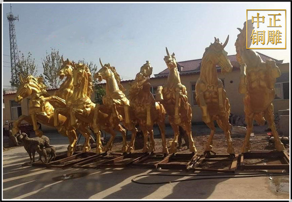 動物雕塑中馬雖不能化煞,但能振奮人心,由于馬本性豪放不羈,有著強健不息的氣數,在材質上多以銅為主,所以擺放銅馬雕塑能夠讓人振作、奮發圖強,如果在企業中擺放適合的馬雕塑,既又拼搏向上的精神內涵,也有招賢納才的寓意,而且銅雕馬也能帶動財運,使事業更加順利,但是在擺放方位上有一定的講究,一般來說馬屬午,應當擺放在家中或工作場所的南方,這個方位比較合適。